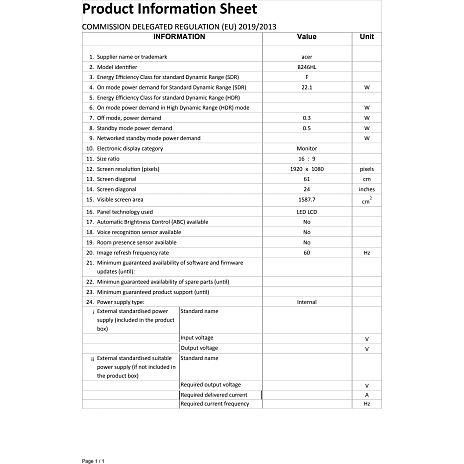 | Skærmstørrelse ” | 24 tommer |