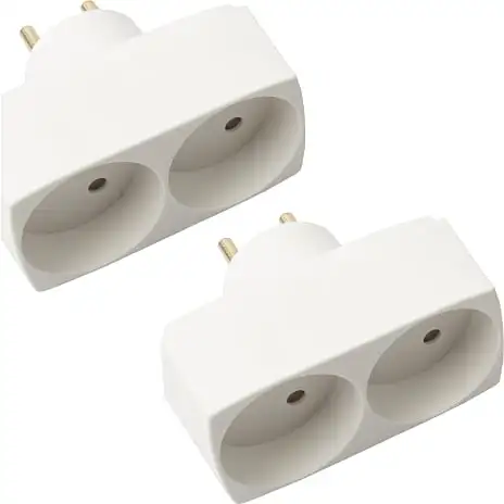 2 R udtag, hvide 2 stk. 10/250volt. Med børnesikring og to skråstillede udtag.