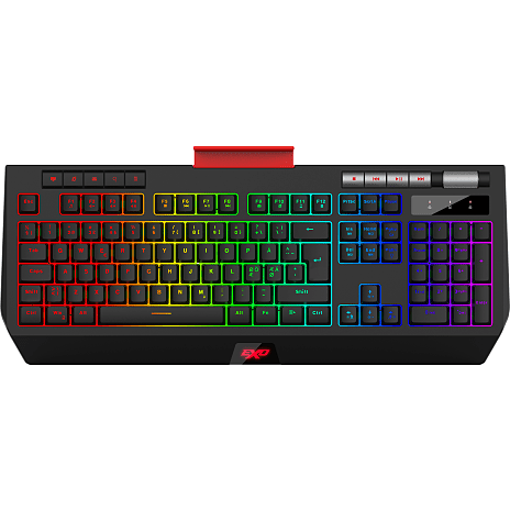 RGB-oplyst gamingtastatur med dedikerede multimediekontroller. RGB-led med floweffekter. Volumen kontrolrulle og 4 dedikerede multimedietaster. Anti-ghosting med 25 nøgler. Til pc og bærbar computer.