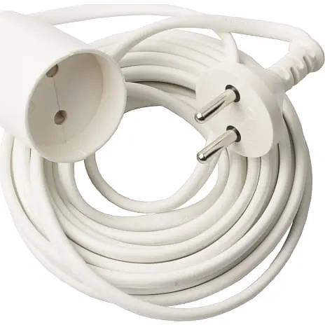 Traditionel forlængerledning, der måler 5 meter og har en tilslutning. Uden jord.