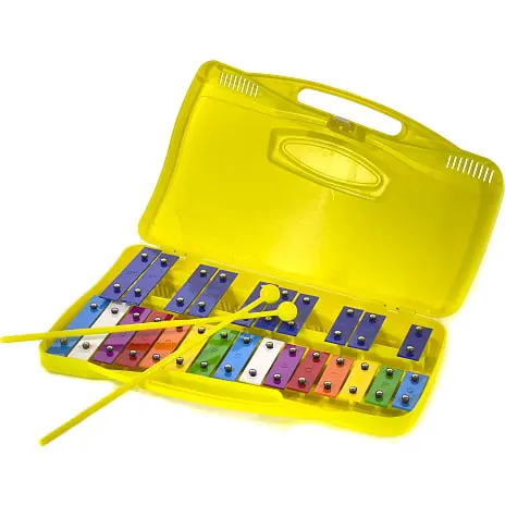 - Farverigt klokkespil til børn i plastik opbevaringskuffert.