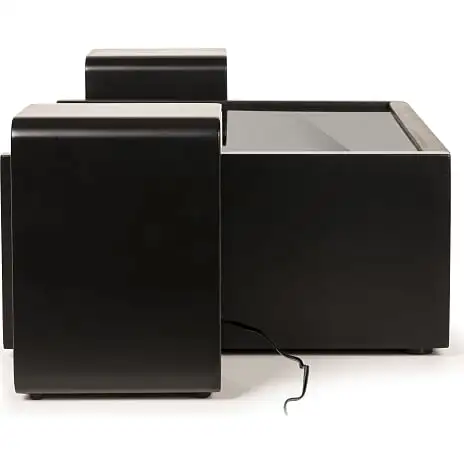 - Kombinationen af det brune vævede støvcover og den sorte finish giver et sofistikeret design og en varmt look.