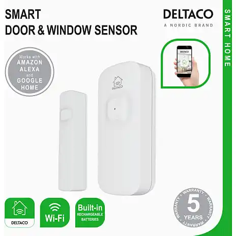 DELTACO SMART HOME Magnetic door and window sensor, WiFi, white