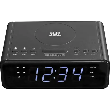 FM clockradio med trådløs opladning og 1,2″ LED display.