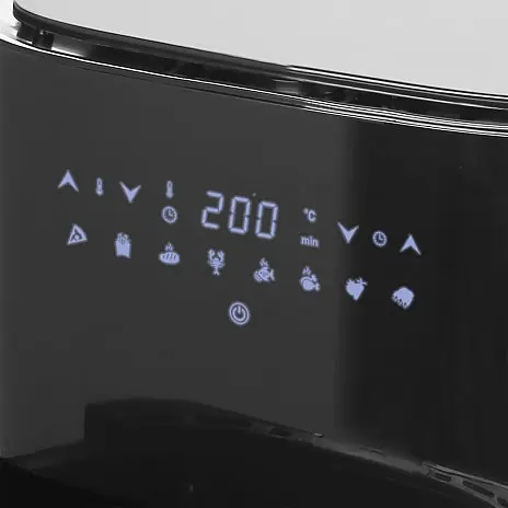 Airfryeren har en kapacitet på 5 liter og tilbereder din mad med varm luft i stedet for olie. Airfryeren har et digital display, en temperaturregulering fra 80 til 200 grader og automatisk sluk funktion.
