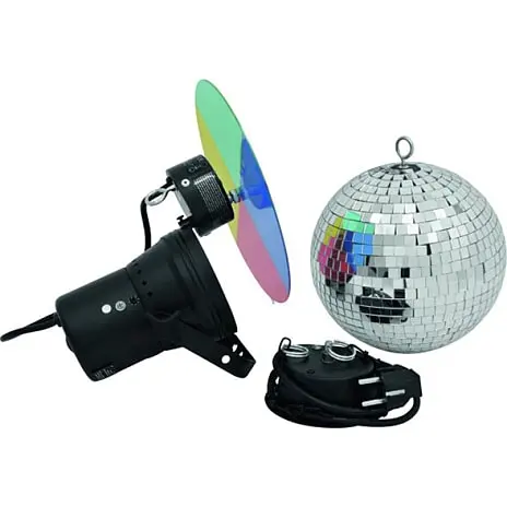 - Diskokugle sæt inkl. motor, spot, drejeligt farveskifter hjul.