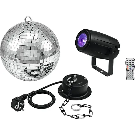 Komplet spejlkuglesæt med motor og multifarvet 5w LED pinspot.