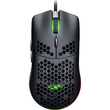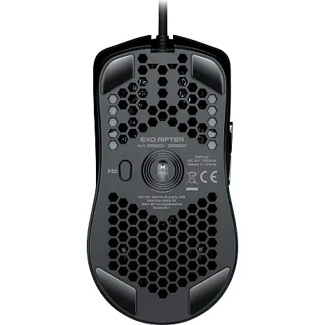 EXO Rifter-gamingmus med en ultralet krop, 5000 dpi-sensor med høj præcision og fuld RGB-belysning. Hullet bikagestruktur med kun 69 g vægt til musen (uden kabel). Pixart PMW3325 optisk sensor med op til 20G acceleration. RGB-LED’er med forskellige lyseffekter. 7 knapper inklusive en dpi on-the-fly knap og en USB polling rate switch. Stigende 1,7 m antitangle kabel.