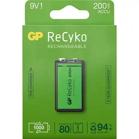 Gp recyko genopladelig nimh 200mah 1x9v (pb)