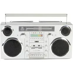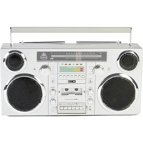 Etfuldt transportabel musikanlæg fra GPO.GPO Brooklyn ghettoblaster eren retro boombox i80’er stil med moderne teknologi under hjelmen. GPO Brooklyn ghettoblaster lader dig kontrollerelydstyrke, balance, bas og diskant og2 x40-watt højttalere giver din musik denvolumen, den fortjener.Hvis du ønskeren endnu højere lyd kan tilslutte eksterne højttalere.[return][return]