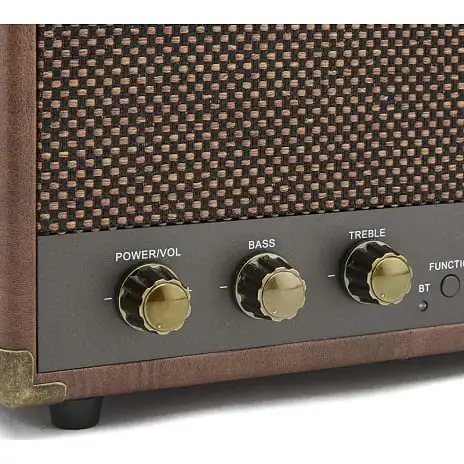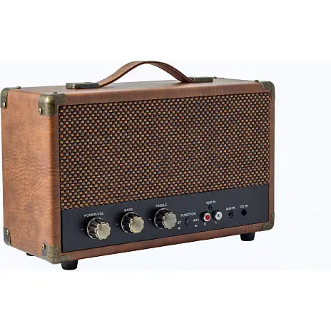 - Multimedie-tilslutning via Bluetooth, RCA indgang og 3,5 mm AUX i bas, diskant og lydstyrkeregulering.
