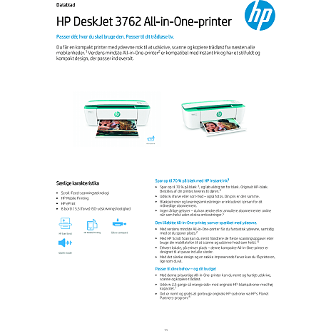 - Med denne prisvenlige All-in-One-printer kan du nemt og hurtigt udskrive, scanne og kopiere trådløst.