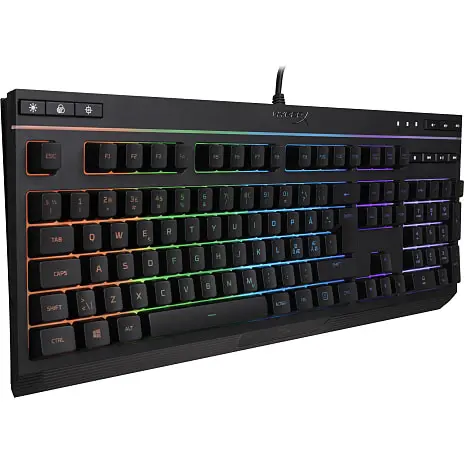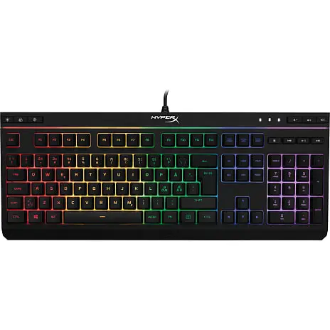 HyperX Alloy Core RGB™ er udstyret med HyperX’s kendetegnende strålende lysbjælke og flotte, dynamiske RGB-lyseffekter og ideelt for gamere, som gerne vil forbedre tastaturets stil og ydeevne uden at overtrække kontoen. Med seks forskellige lyseffekter og tre lysstyrkeniveauer giver det en perfekt balance mellem glans og budget. Alloy Core RGB er konstrueret med en holdbar, forstærket plastikramme og designet til stabilitet og pålidelighed for gamere, som er på udkig efter et tastatur, som kan holde. De bløde taster har tydelig feedback og er samtidigt lydsvage og udstyret med anti-ghosting-funktion og tasteovergang i gamingkvalitet. Tastaturet er modstandsdygtigt over for spild og kan tåle 120 ml væske, så uheld med drikkevarer ikke betyder stop for spillet. Den dedikerede mediebetjening og knapper med hurtig adgang til lys- og spiltilstand giver kontrol lige ved hånden. Tastaturlåsen giver dig mulighed for at låse tastaturet uden at skulle sætte hele systemet på standby. Alloy Core RGB er stilfuldt, veludstyret og holdbart, hvilket gør det til et fantastisk allround-tastatur for gamere.