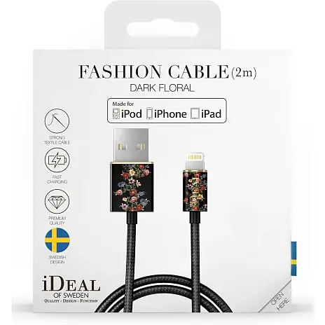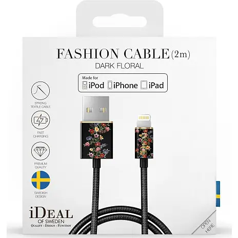 The 2 meter lightning cable is MFI certified by Apple and fits all Apple’s units with a lighting port. The cable is of the highest quality made in braided nylon and with luxurious golden details.