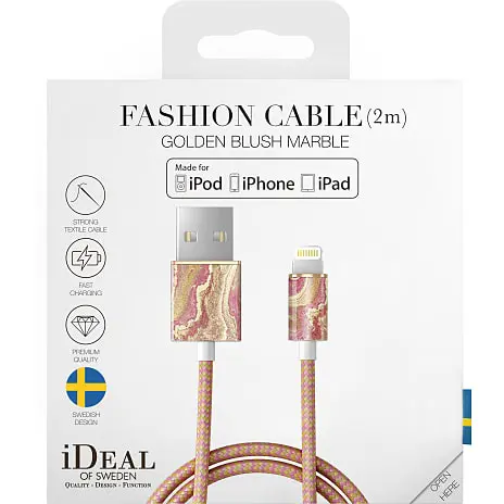 2 meter lightning cable er MFI certificeret af Apple og passer til alle Apples enheder med en lightning port. Kablet er af højeste kvalitet og er lavet af flettet nylon med luksuriøse gyldne detaljer.