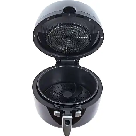 Takket være den varme, hurtigt cirkulerende luft kan du næsten uden olie opnå et bedre og sundere resultat. Drejearmen sikrer, at ingredienserne blandes og vendes under tilberedningen. Du kan se igennem toppen af airfryeren, når den er tændt og følge med i madlavningen. Udover det har den Non-stick belægning for nem rengøring