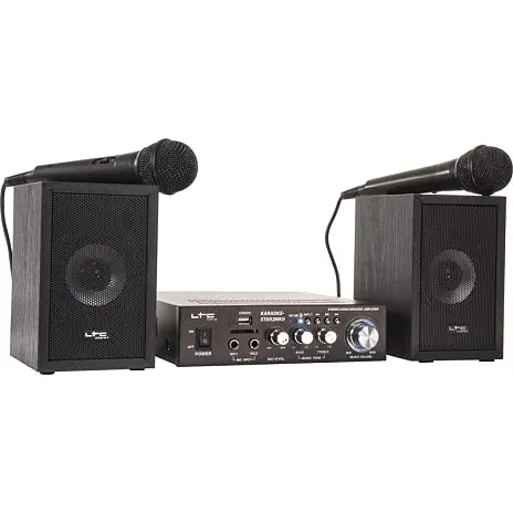 Finpuds dine karaoke-skills! Sættet erlet at sætte op og indeholder 2 mikrofoner,2 højttalere ogforstærker.