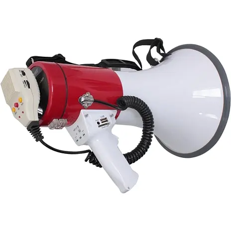 Kraftig megafon på 50 watt med USB og SD kortlæser og en rækkevidde på 600 meter.