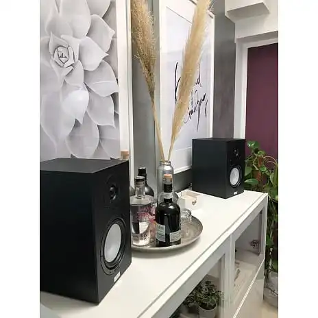 - Komplet højkvalitets lydsystem designet til vinyl/streaming.