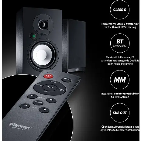 - Kan både forbindes direkte via phono eller digitalt via. Bluetooth med aptX til trådløs musikstreaming.