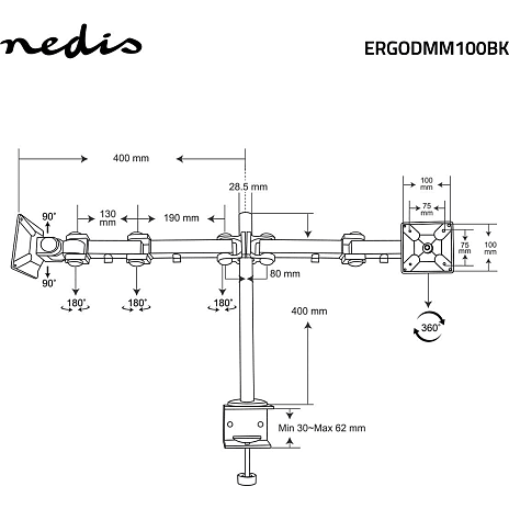 - Monitorbeslag til bordmontering.