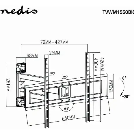 Fastgør et fjernsyn til dette TV-vægbeslag fra Valueline for at kunne vippe, dreje og rotere det. Dette giver dig en fantastisk fleksibilitet til at justere TV’et, som du ønsker, for at opnå den perfekte synsvinkel under alle forhold. Omfatter alle påkrævede installationsmaterialer og en vejledning til hurtig og nem montering af TV-beslaget.