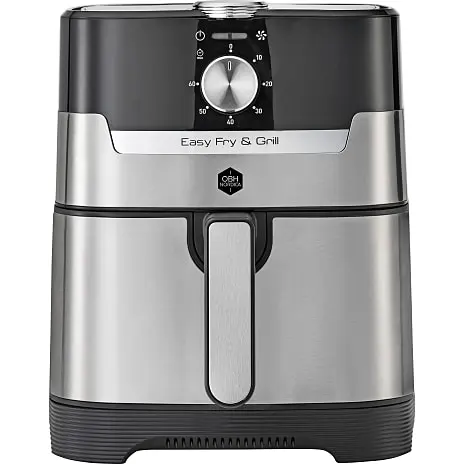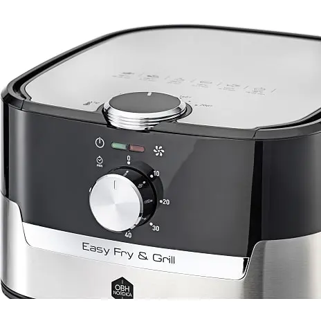 Vil du gerne overraske familien med ekstra velsmagende og sund aftensmad, men mangler tid? Så er denne airfryer lige, hvad du har brug for. En airfryer cirkulerer meget varm luft med høj hastighed, hvilket giver maden den perfekte overflade. Alt bliver sprødt udenpå og mørt indvendigt, hvilket er særligt fordelagtigt, når du tilbereder kylling. Takket være den hurtige og varme luftstrøm kan du tilberede maden med 99 % mindre fedt. Smagen og konsistensen er en kombination af grillet og friturestegt mad, som dog er tilberedt med meget lidt eller slet ingen olie. Velegnet til dig, der er sundhedsbevidst og gerne vil servere lækker mad, som alle kan lide. En anden stor fordel er, at airfryeren afgiver meget lidt lugt og mados under tilberedning af maden. Airfryeren er perfekt at bruge i en travl hverdag og uovertruffen, når du har inviteret venner og gerne vil servere noget rigtig lækkert. Denne airfryer har en stor XL-kapacitet, som gør det muligt at tilberede op til 6 portioner. Du vælger selv en temperatur på op til 200 grader, og således kan du tilberede alt fra sprøde pomfritter, kylling og kød til skaldyr, halloumi og grøntsager med et perfekt resultat. Varmen er jævnt fordelt, hvilket gør al mad en smule sprødt. Opskrifter til inspiration findes på www.obhnordica.dk. Når du har tilberedt et perfekt måltid, kan du nemt gemme dine tids- og temperaturindstillinger og bruge dem igen næste gang. Easy Fry & Grill Classic + indeholder mange smarte funktioner, der gør madlavningen nemmere. Den har en timer på 60 minutter med et højt og tydeligt signal, der meddeler, hvornår maden er klar. Flere dele er aftagelige og kan vaskes i opvaskemaskinen. Denne airfryer har desuden grillfunktion, og der medfølger en praktisk grilltilbehørsdel. Den er langt bedre end en almindelig ovn: ingen forvarmning, hurtigere og bedre resultater (49 % hurtigere end at lave pomfritter i ovnen). Spar op til 65% energi med varmluftsfriturer fra OBH Nordica sammenlignet med en traditionel ovn, energiklasse A. Test udført i 2022 med frosne pommes frites. * 700 g friske pomfritter tilberedt med 8 ml olie i forhold til tilberedning i en traditionel frituregryde med 2 liter olie ** Ekstern test udført med 700 g frosne pomfritter sammenlignet med en almindelig Tefal-ovn.