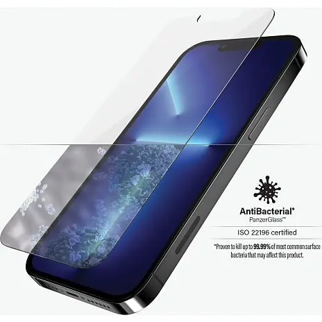PanzerGlass™ skærmbeskyttelse til iPhone 13 Pro Max med antibakteriel effekt, har de samme features som originalt PanzerGlass ™ og vil beskytte din skærm mod ridser og stød. Standard fit glasset er reduceret i størrelsen og har fuld silikone klæbemiddel, som ikke påvirker touch funktionen.