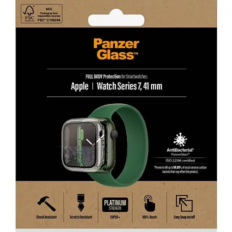 PanzerGlass™ Full Body Protection til Apple Watch Series 7 41mm dækker hele skærmens overflade. Det giver dig den højeste standard indenfor skærmbeskyttelse, samtidig med du 100% bevarer berøringsfølsomheden. For at spejle berøringen og følelsen af det originale display, er PanzerGlass™ belagt med et oleophobisk lag, som både er antibakterielt og med anti-fingeraftryk. Den gennemsigtige ramme beskytter tilmed siderne af dit ur.