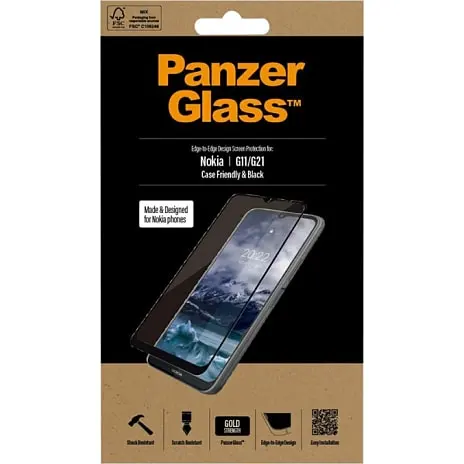 PanzerGlass™ skærmbeskyttelse til Nokia G11/ G21 er case-friendly og dækker hele skærmens overflade.