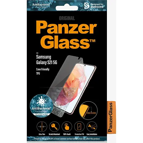 Skærmbeskyttelsen er lavet af ultratyndt og fleksibelt TPU materiale med Anti-Bacterial effekt. PanzerGlass™ sikrer fuld funktionalitet af din Samsung telefon med 100% touch funktionalitet og det valgte materiale sikrer en helt glat overflade på skærmen.