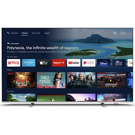126 cm (50″) 4K UHD Android 3-sidet Ambiligh TV + Førende HDR-formater understøttes, Dolby Vision og Dolby Atmos