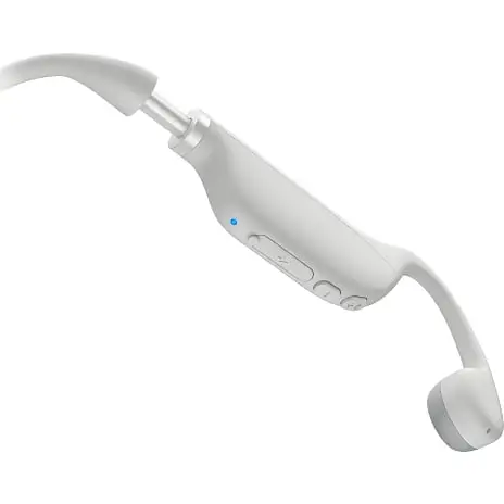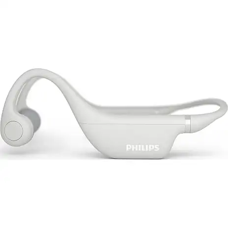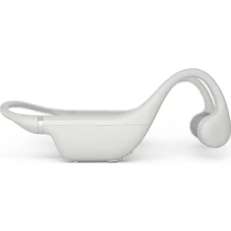 Kids bone conduction med 5 timers spilletid og dB begrænser for at beskytte ørene. IPX5, mikrofon og justerbar nakkebøjle.