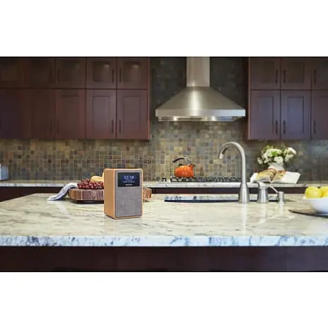 This small DAB+/FM radio looks great wherever you put it. The wooden cabinet and fabric speaker cover add a dash of minimalist warmth to any room. You get crystal-clear reception, plus a Gentle Wake alarm function that’s perfect for guests.