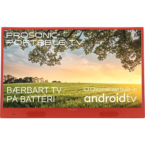 Prosonic 32″ transportabelt TV. Tag dit TV med dig på farten. Prosonic 32″ LED TV er et unikt, genopladeligt og transportabelt Android TV. Med et Android TV får du adgang til alle apps fra Google App Store og samtidig indbygget Chromecast.
