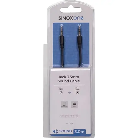 Sinox One 3,5 mm Minijack kabel kan bruges til at overføre et audio signal fra fx. en telefon, MP3-afspiller til HiFi eller en autoradio.