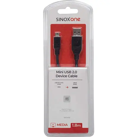 Sinox One Usb 2.0 Mini kabel bruges normalt til tilslutning af kamera til Pc.Specifikationer: 10 års garanti. Forstøbte stik. Version 2.0. High-speed 480 Mbit/s