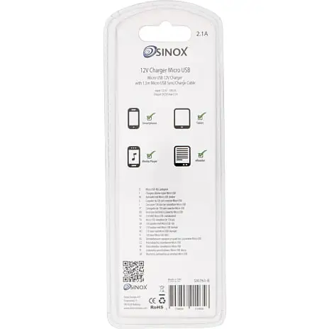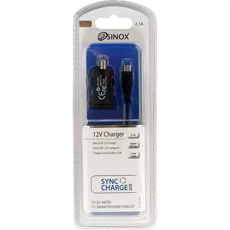 Sinox USB Billader med et Micro USB kabel som kan bruges til at oplade din mobiltelefon, MP3 afspiller og meget mere på farten. Specifikationer: Input: 12-24 Volt DC. Output: 5 Volt DC. 2100 mA. Kompakt design.
