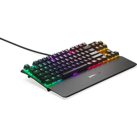 Apex 7 TKL er udstyret med mekaniske switches der er garanteret til 50 millioner tryk. De lineære røde switche sikrer let og lynhurtig aktivering. Integreret OLED display der bl.a. kan vise discord informationer. Keyboardet er ekstremt holdbart og bygget på en aluminiumsramme. Magnetisk aftagelig håndledsstøtte medfølger.