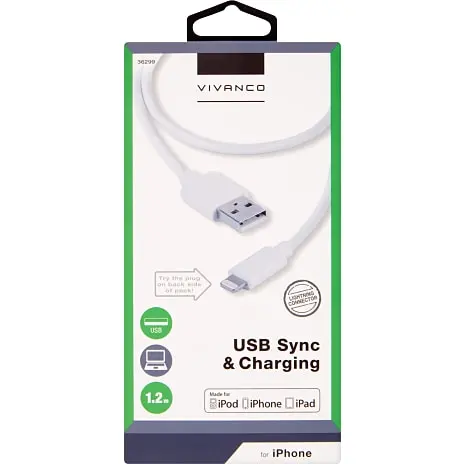 Lightning USB-kabel til synkronisering/opladning til Apple-enheder 1,2 m hvidTil tilslutning af Apple-enheder til computer eller strømforsyning af hensyn til opladningUnderstøtter opladning og datasynkroniseringPasser til f.eks.: iPhone 5/5s, iPhone 6/6s Plus, iPhone 7/7 Plus, iPad Air/Air 2, iPad mini 4MFI-certificeret (designet til iPod, iPhone, iPad)Længde: 1,2 mFarve: hvid