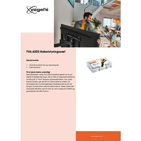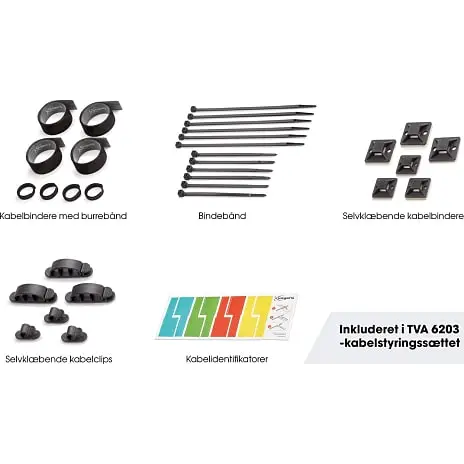 Med tilbehøret i dette TVA 6203-kabelstyringssæt har du en række forskellige løsninger, der er lette at organisere kablerne omkring dit TV med. Stropper og kabelbindere, men også kabelmarkører, gør det let at holde kablerne adskilt. De selvklæbende monteringsblokke til kabelbinderne kan let bruges i kombination med bindebåndene. Takket være den kompakte størrelse og form kan du nemt opbevare sættet og genopfylde det efter behov.